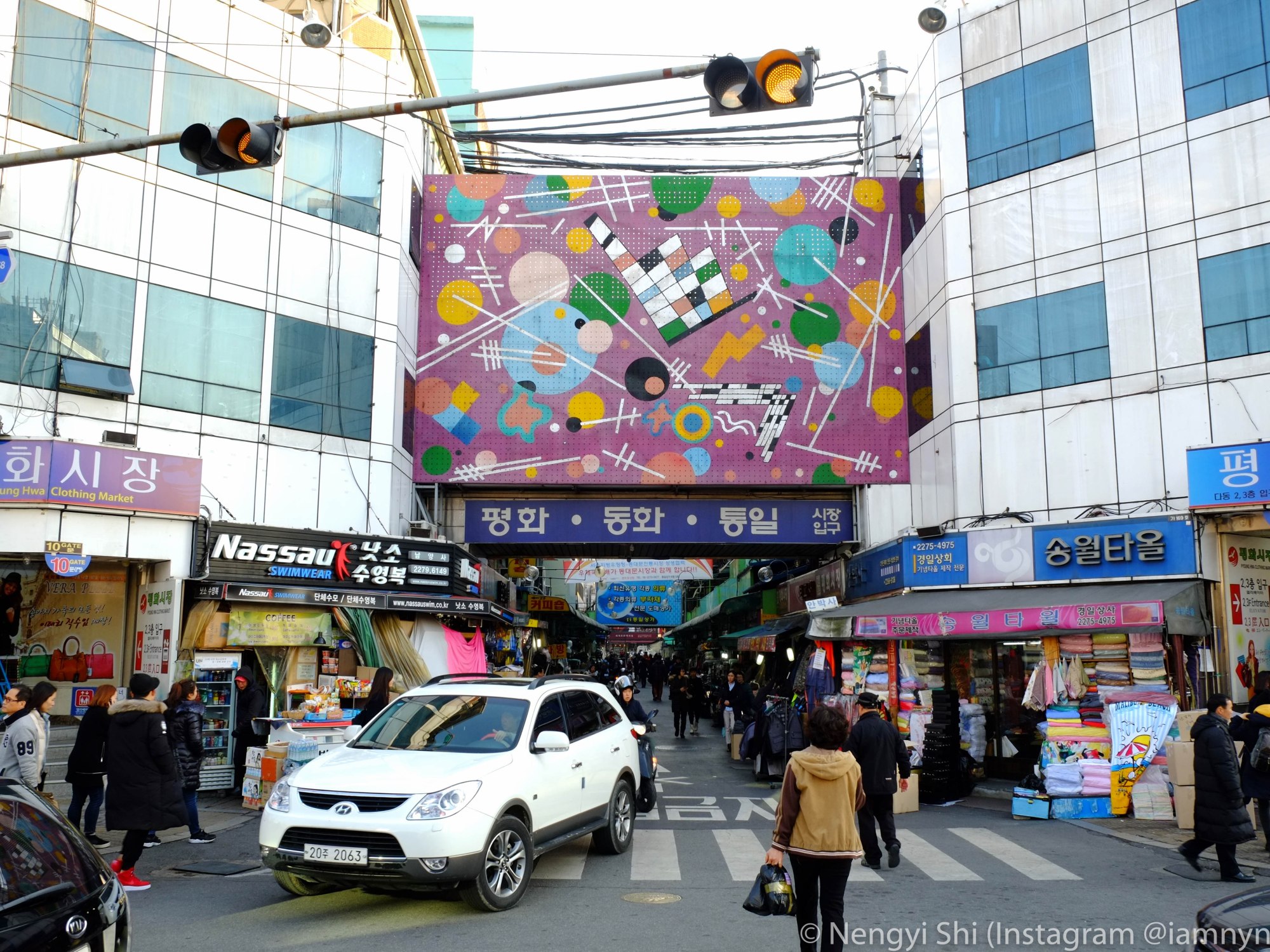 From Exit 1 of Dongdaemun History and Culture Park Station on Line 2/4, walk straight until you have exited the DDP. From there, you can see the main street lined with plenty of fashion malls. Cross the street, head all the way right until you see Pyounghwa Market, which is next to the famous Doota mall.